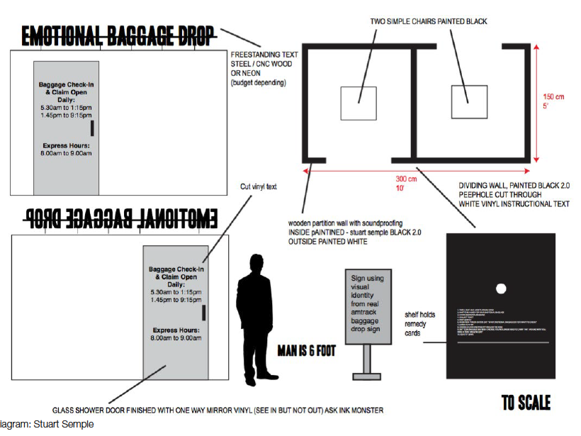 - Art installation, designed like a baggage carousel, where strangers could anonymously “unload” their worries (their “emotional baggage”)